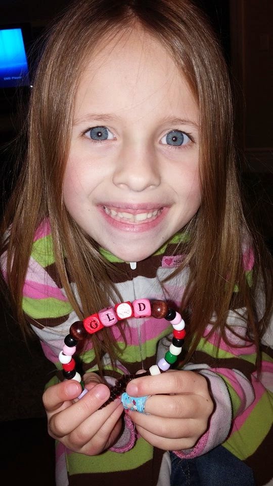We also made GLAD bracelets to remind us to be Glad. When a situation arises and we have an unhappy child, I am hoping I can play the glad game with them and help them realize we can choose to be Glad!